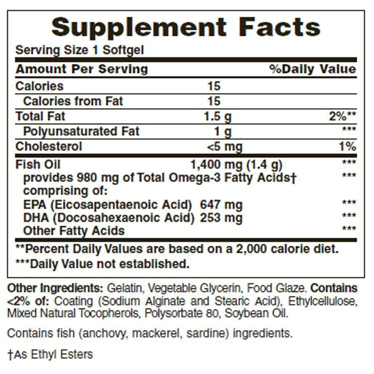 - Total Omega-3 Fatty Acids: 980 mg