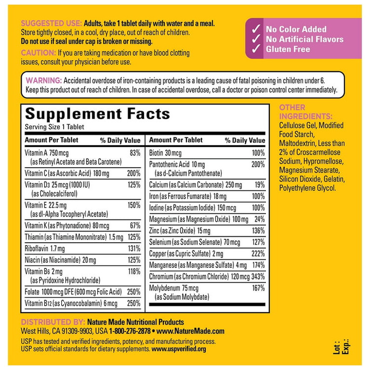 Nature Made Multi Vitamin For Women Tablets – 250 Ct