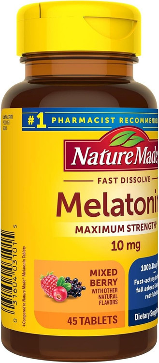 Nature Made Fast Dissolve Melatonin 10 mg – Maximum Strength – 45 Count