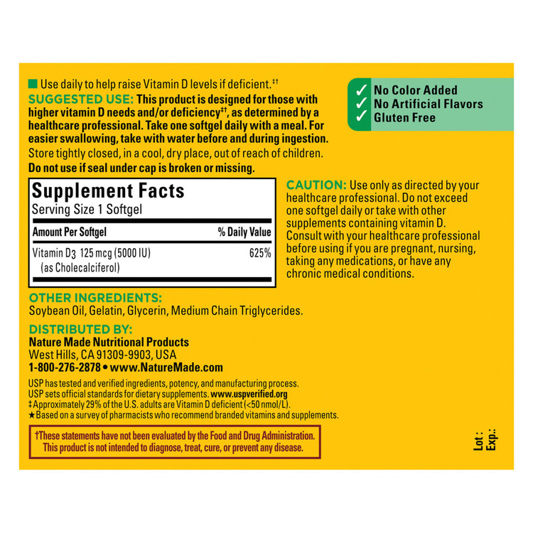 Nature Made Extra Strength Vitamin D3 5000 IU (125 mcg) Softgels – 240 Count