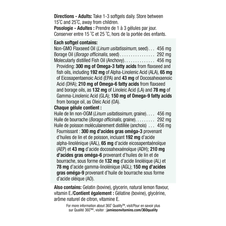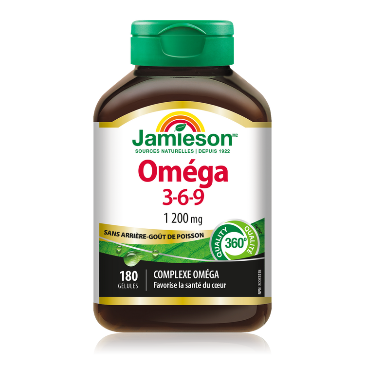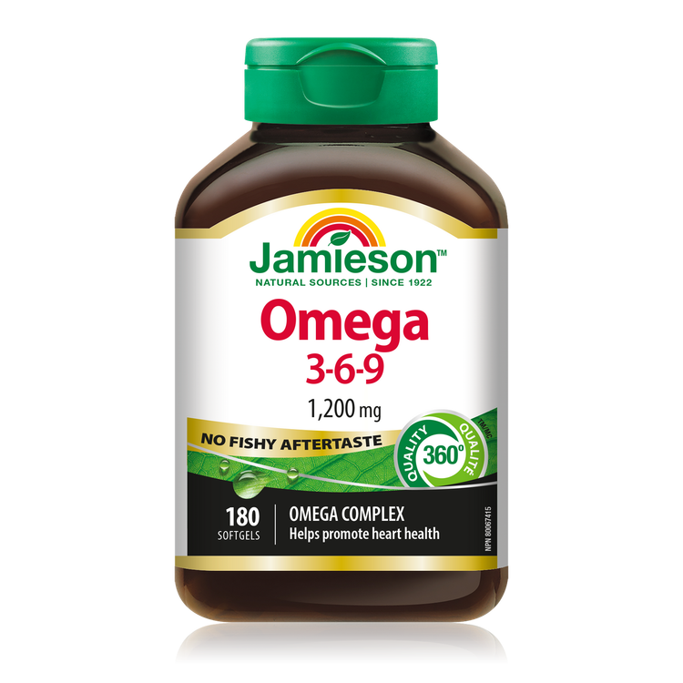 Jamieson Omega 3-6-9 1200mg, No Fishy Aftertaste – 180 Softgels