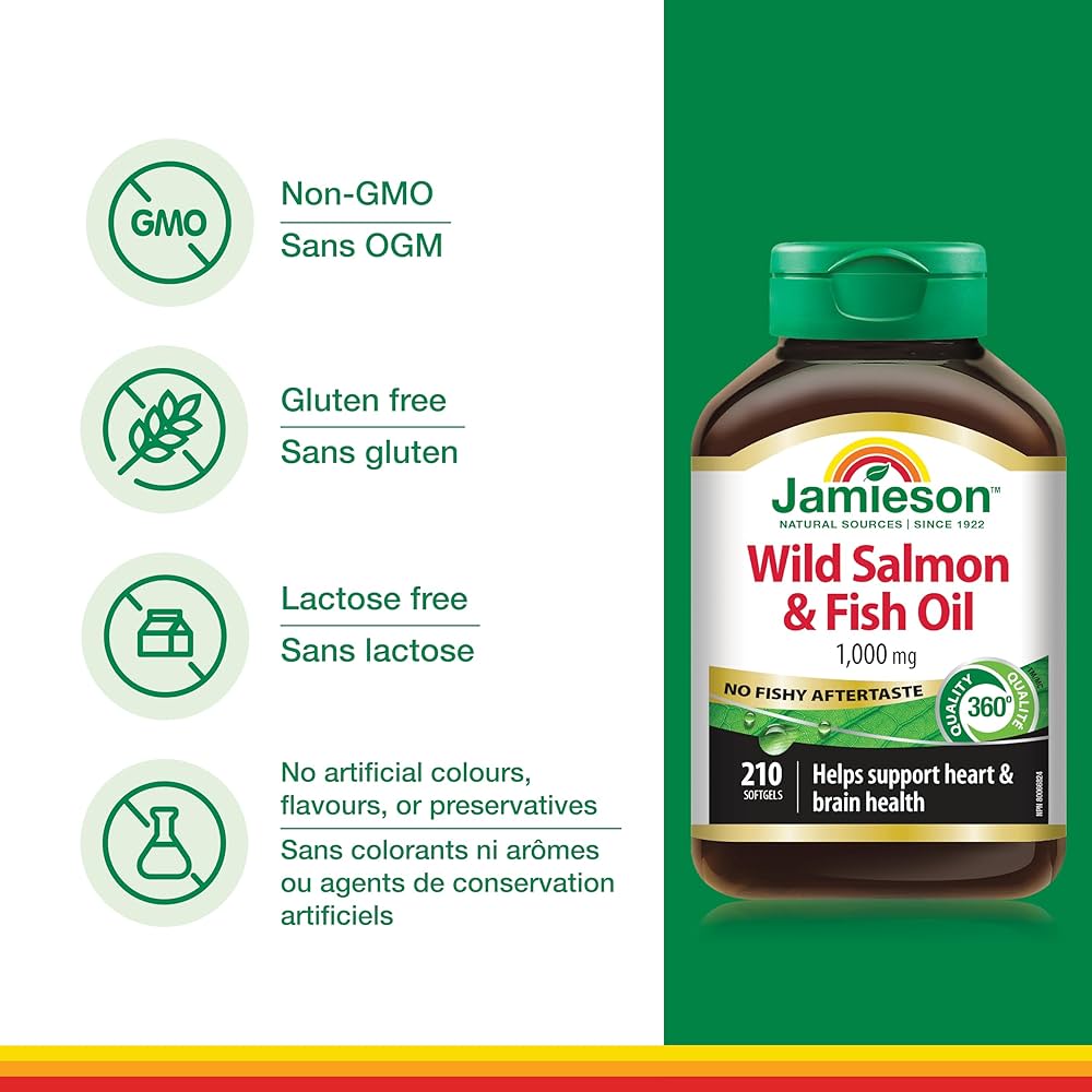 مکمل امگا ۳ جیمیسون ترکیبی از روغن سالمون وحشی و سایر روغنهای ماهی غنی از EPA و DHA است که به سلامت قلب و عروق، عملکرد مغز، بینایی و کاهش التهاب مفاصل کمک میکند. این محصول با تکنولوژی ویژه No Fishy Aftertaste ساخته شده تا هیچگونه طعم و بوی ناخوشایند ماهی در دهان باقی نماند.