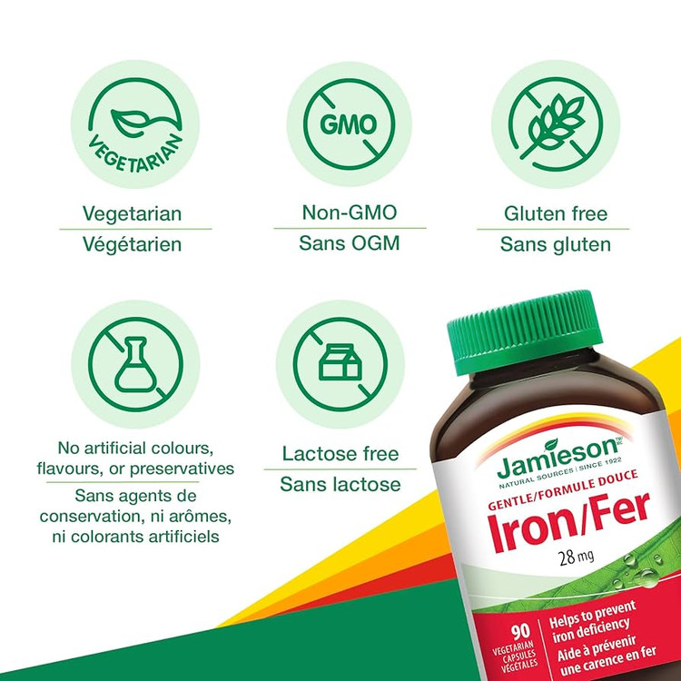 Jamieson Gentle Iron – 28 mg – 90 Capsules