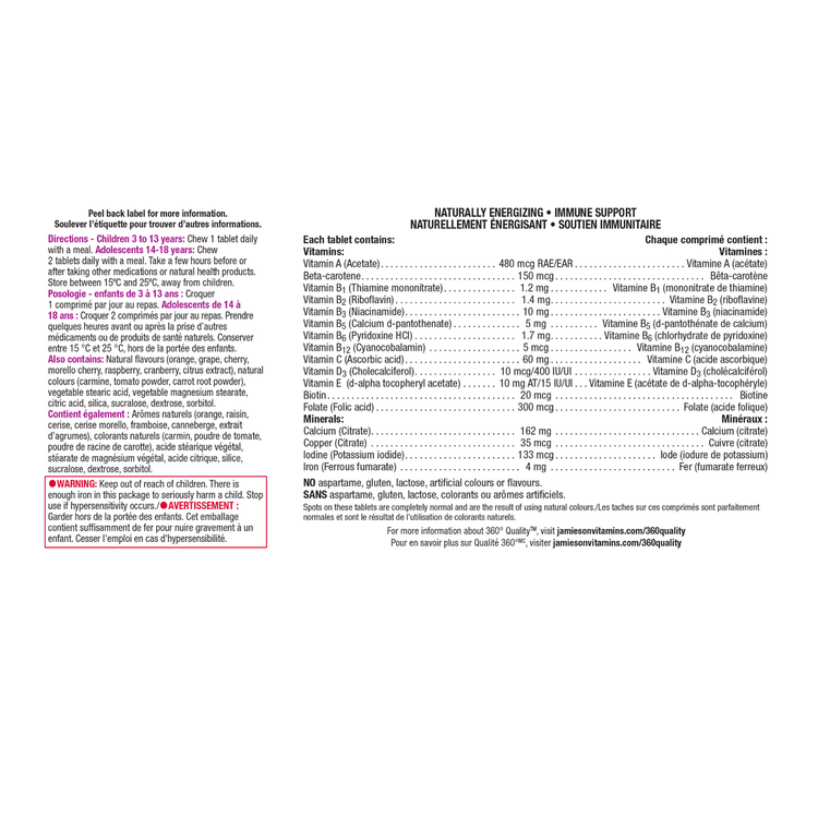 Jamieson Chewable Multivitamins for Kids – With Iron, 60 Chewable Tablets