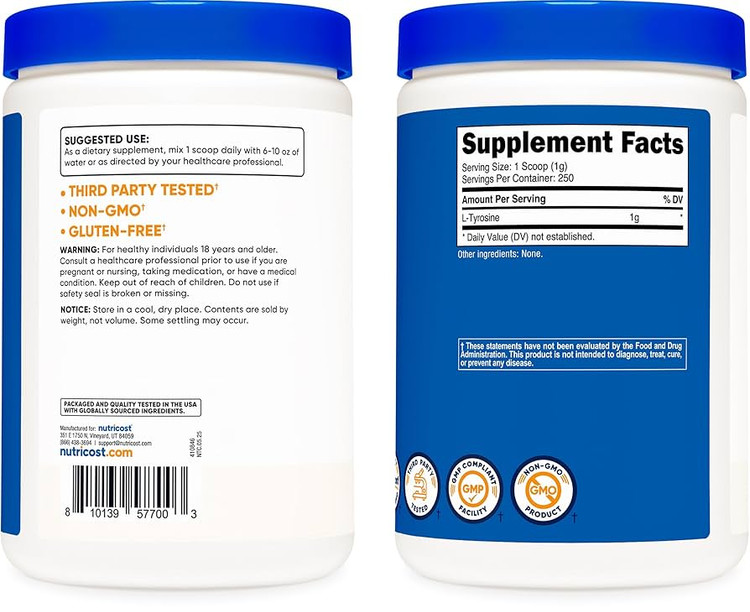 Nutricost L-Tyrosine Powder 250 Grams – Pure L-Tyrosine Powder 1000mg Per Serving