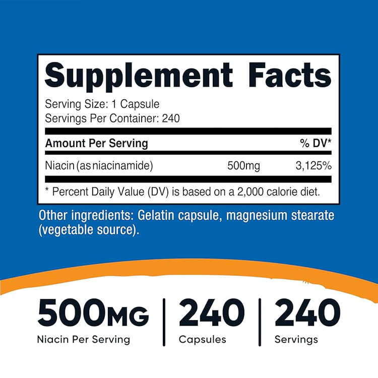 Nutricost Niacinamide (Vitamin B3) 500mg – 240 Capsules, Non-GMO, Gluten Free, Flush Free Vitamin B3