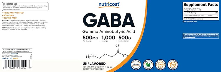 Nutricost Pure GABA 500G Powder (Gamma Aminobutyric Acid) (500 Grams / 1.1 pounds)