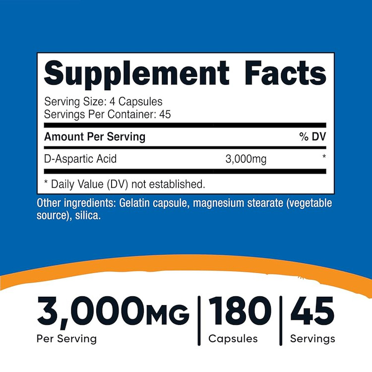 Nutricost D-Aspartic Acid (DAA) Capsules 3000mg Per Serving (180 Capsules) – Non-GMO