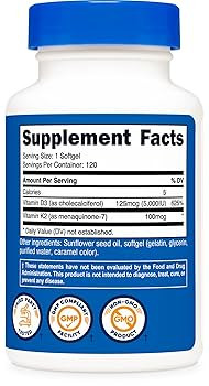 Nutricost Vitamin K2 (MK7) (100mcg) + Vitamin D3 (5000 IU) 120 Softgels - Gluten Free and Non-GMO