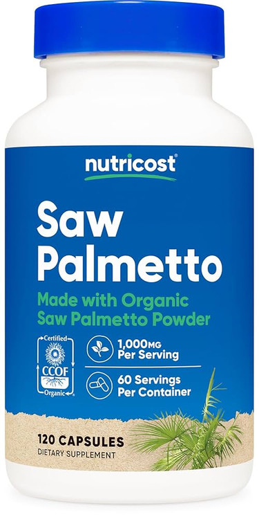 Nutricost Saw Palmetto 1000mg, 120 Capsules – CCOF Certified, Made with Organic Saw Palmetto, Vegetarian Friendly, 60 Servings, 500mg Per Capsule, Gluten Free