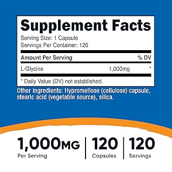 Nutricost L-Glycine 1000mg, 120 Capsules – Vegetarian, Non-GMO, and Gluten Free