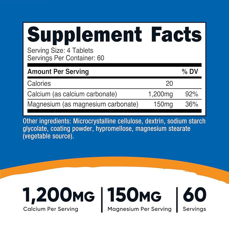 Nutricost Calcium (1,200 mg) & Magnesium Carbonate (150mg) 240 Tablets, 60 Servings, Non-GMO, Gluten Free