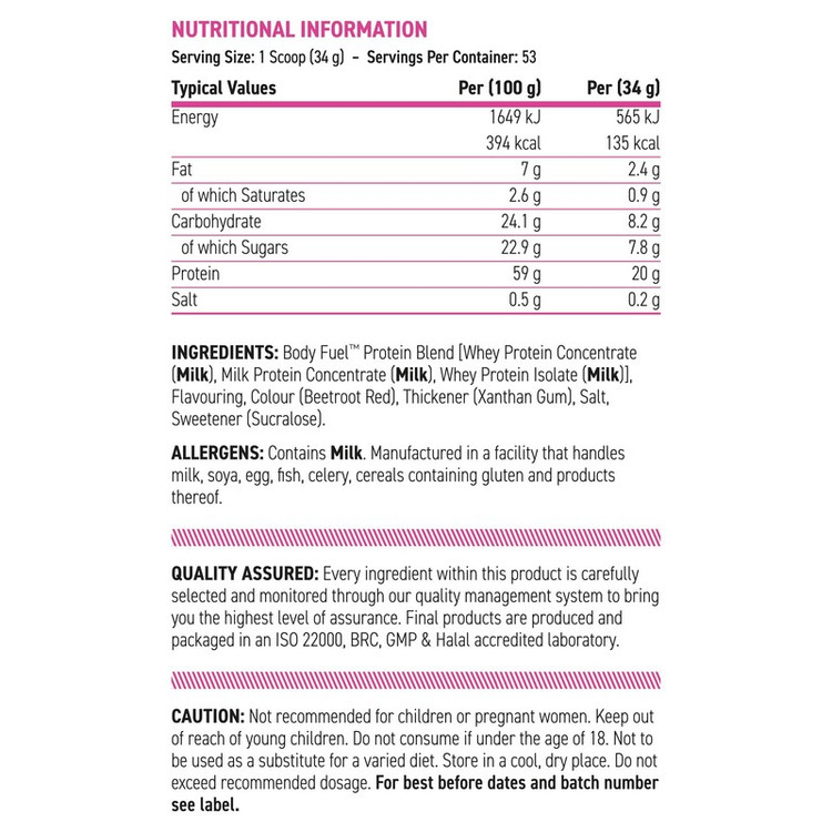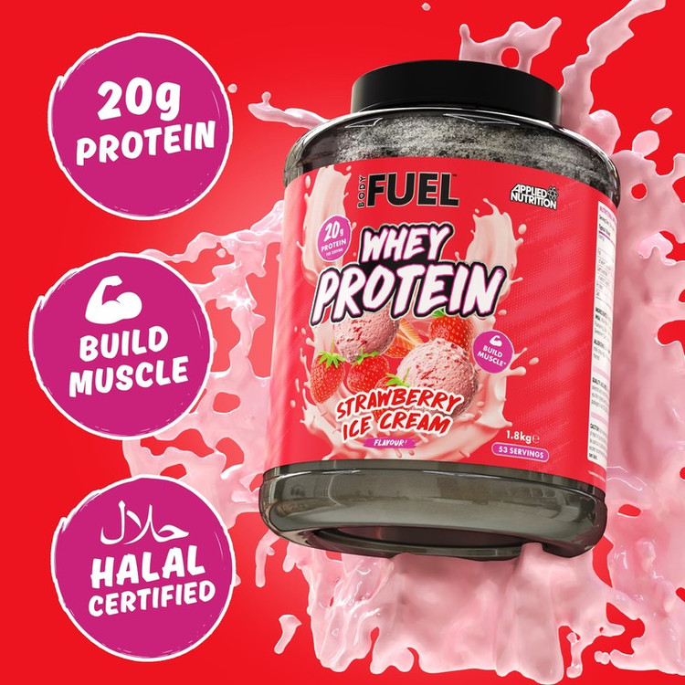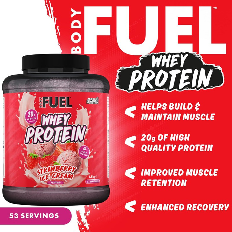 Applied Nutrition Bodyfuel Whey Protein Powder - 20g Protein for Muscle Recovery & Weight Management - Low-Calorie, Keto-Friendly - (1.8kg - 53 Servings) (Strawberry Ice Cream)