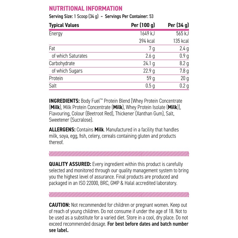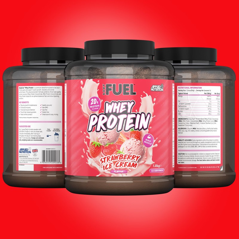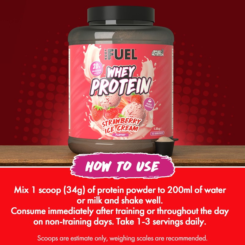 Applied Nutrition Bodyfuel Whey Protein Powder - 20g Protein for Muscle Recovery & Weight Management - Low-Calorie, Keto-Friendly - (1.8kg - 53 Servings) (Strawberry Ice Cream)