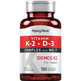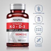 Piping Rock Vitamin K2 D3 Supplement | 100 mcg | 180 Softgels | Complex with MK7 | Non-GMO, Gluten Free