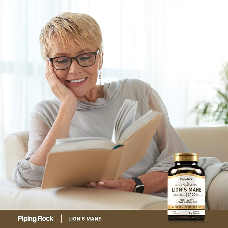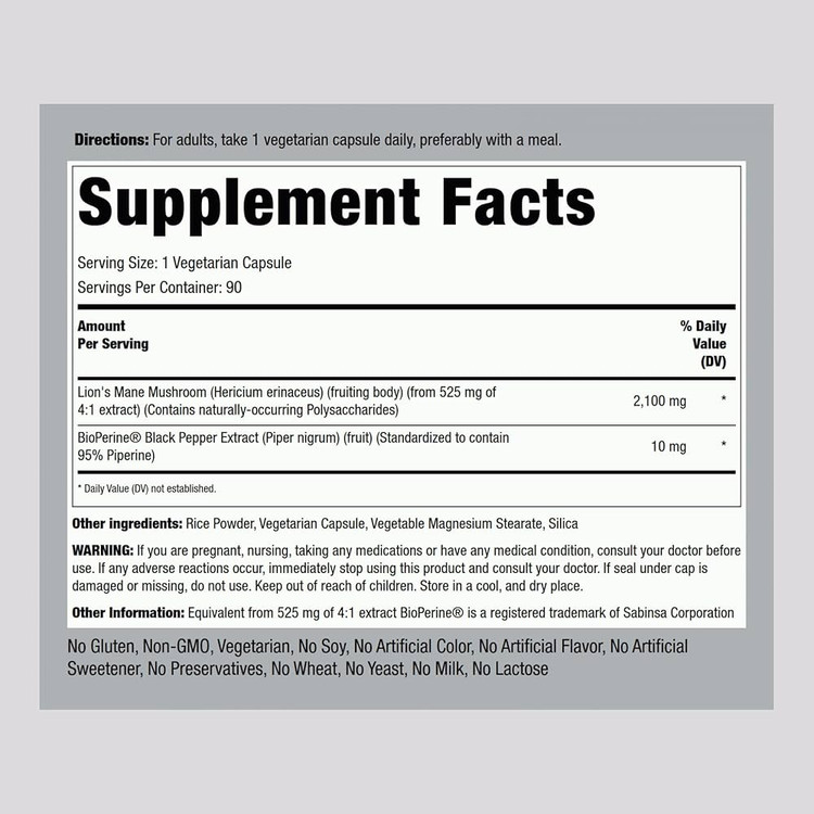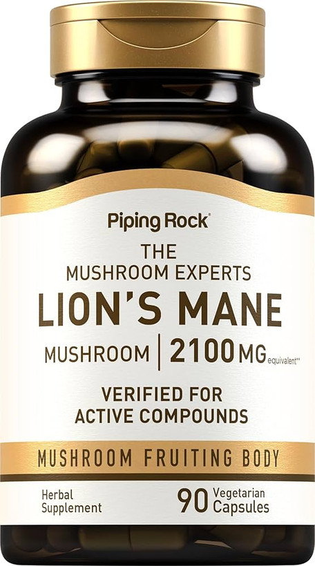 Piping Rock Lion’s Mane Supplement Capsules | 2100mg | 90 Count | Mushroom Fruiting Body Extract | Hericium Erinaceus | Vegetarian, Non-GMO, Gluten Free