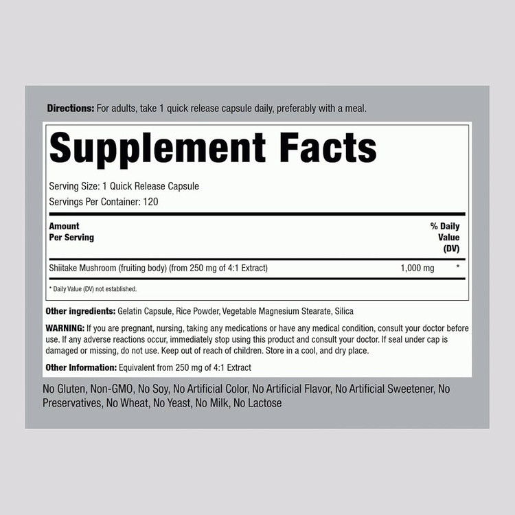نام محصول: Piping Rock Shiitake Mushroom Extract (Lentinus Edodes)