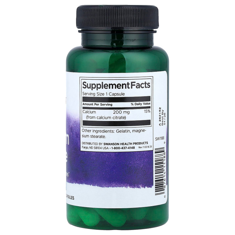Swanson Calcium Citrate, 200 mg, 60 Capsules