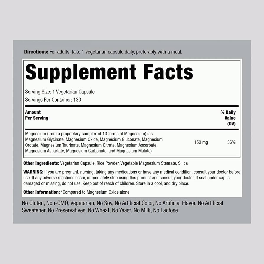 این مکمل حاوی ترکیبی از ۱۰ فرم مختلف منیزیم است که برای جذب و پایداری بهتر در بدن طراحی شدهاند. فرمولاسیون این محصول شامل فرمهایی مانند: