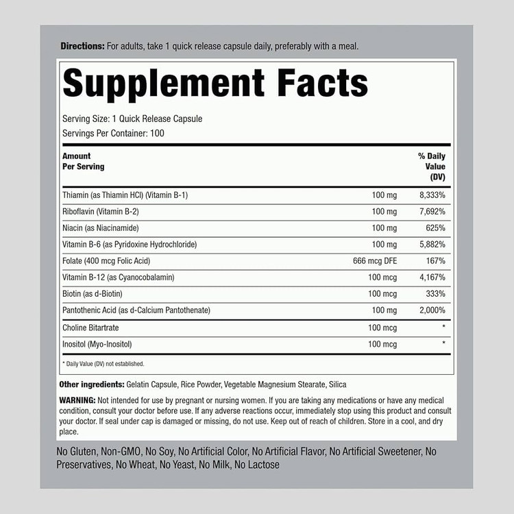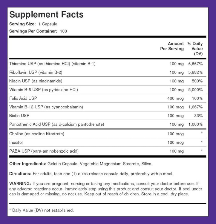 هر کپسول حاوی طیف کامل ویتامینهای گروه B با قدرت بالا |