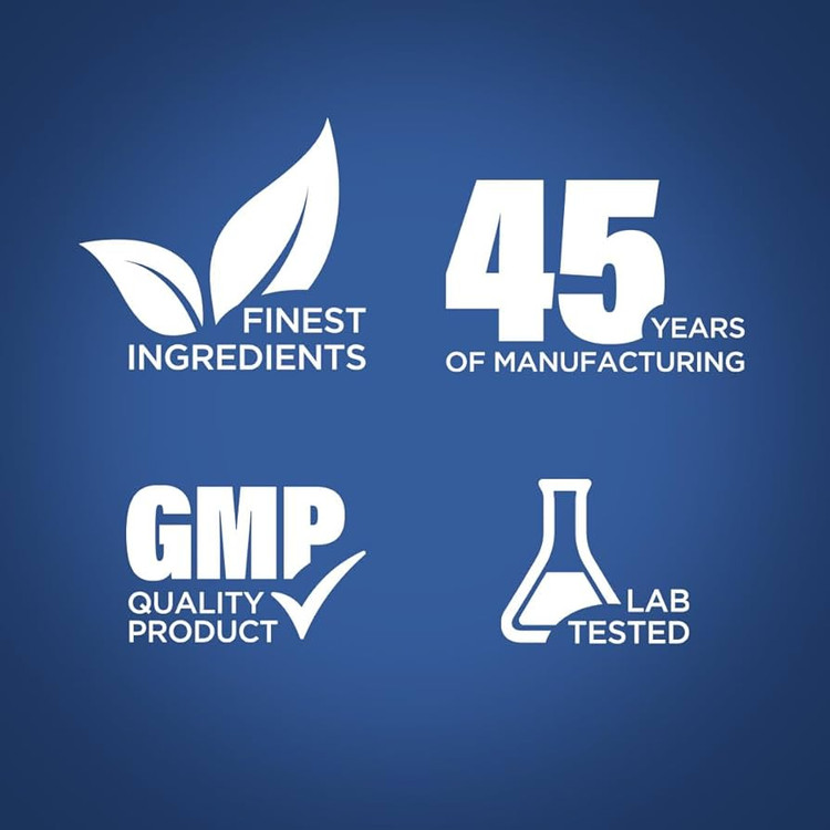 این مکمل فاقد گلوتن، بدون GMO و بدون مواد نگهدارنده مصنوعی بوده و در ایالات متحده و تحت استانداردهای GMP تولید شده است.