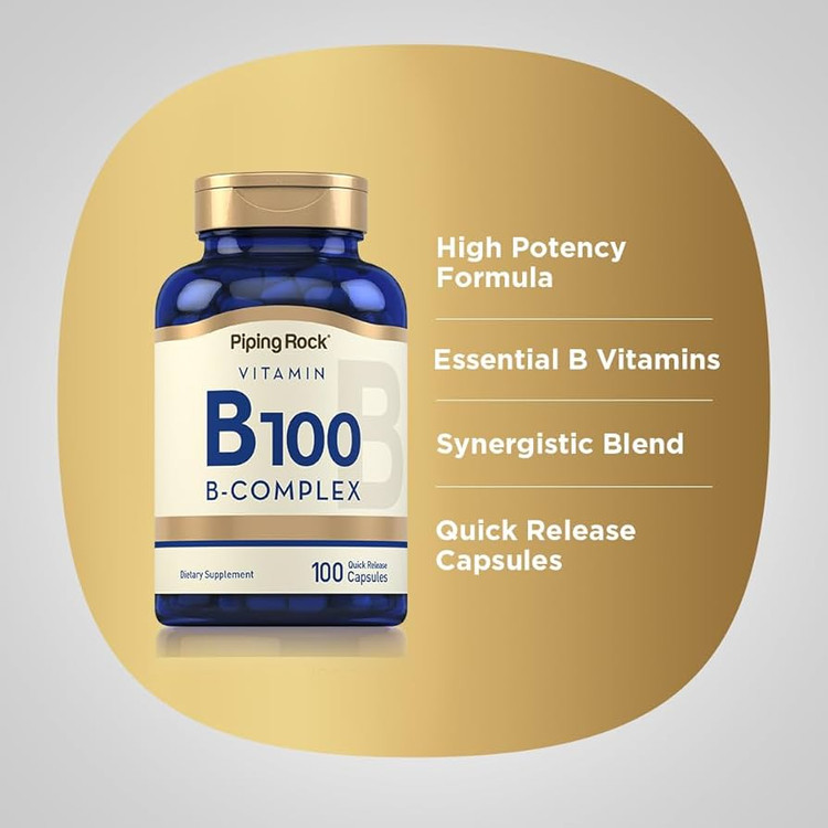ویتامین B-100 کمپلکس از برند معتبر Piping Rock ترکیبی کامل از ویتامینهای گروه B را فراهم میکند که نقش حیاتی در سلامت انرژی، مغز، اعصاب و متابولیسم بدن دارند. این محصول دارای ویتامینهای B1، B2، B3، B5، B6، B12، بیوتین و فولیک اسید با دوز بالا است، مناسب برای افرادی که نیاز افزایشیافتهای به این ویتامینها دارند یا سبک زندگی پر استرس و شلوغی دارند.