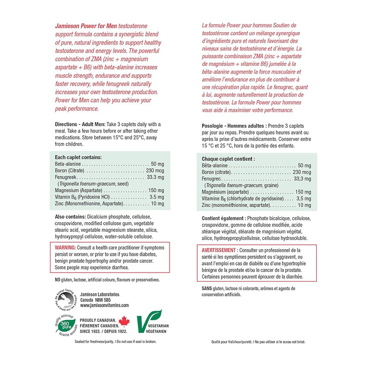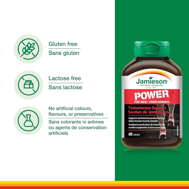 Jamieson Power For Men یک مکمل تخصصی برای آقایان است که با ترکیب گیاهی و معدنی منحصربهفرد خود، به افزایش سطح تستوسترون طبیعی، بهبود عملکرد عضلانی و تسریع ریکاوری بعد از تمرین کمک میکند.