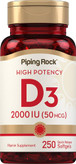 ویتامین D3 پایپینگ راک ۲۰۰۰ واحد – ۲۵۰ سافتژل