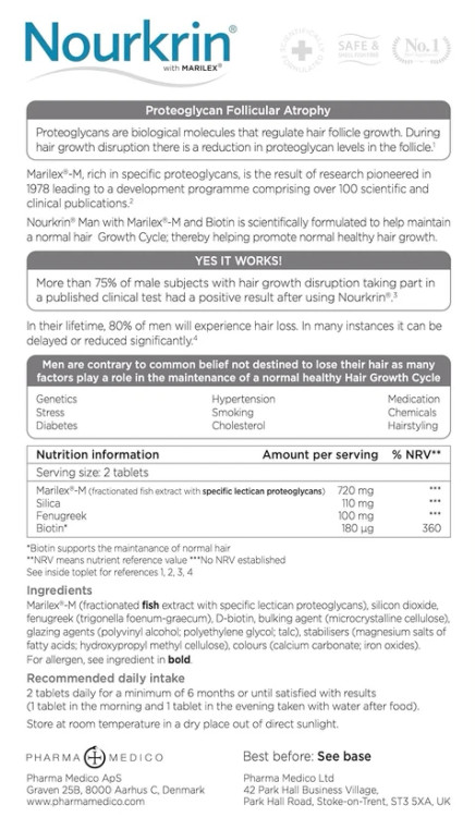 Nourkrin Man یک مکمل تقویتی پیشرفته است که بهطور خاص برای آقایانی که با مشکل ریزش مو یا کاهش ضخامت مو مواجه هستند، طراحی شده است. این محصول با فرمولاسیونی طبیعی شامل Marilex® (عصاره دریایی اختصاصی) و سایر مواد مغذی، به حفظ رشد طبیعی مو کمک میکند.