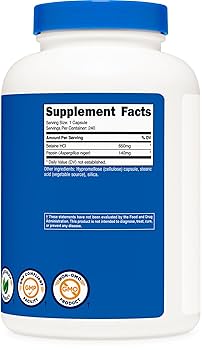Nutricost Betaine HCl + Pepsin 790mg – Digestive Support & Nutrient Absorption