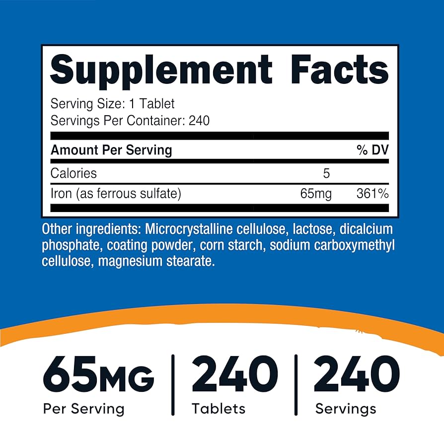 Nutricost Iron (Ferrous Sulfate) 65mg – 240 Tablets