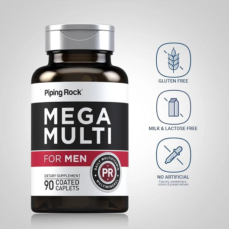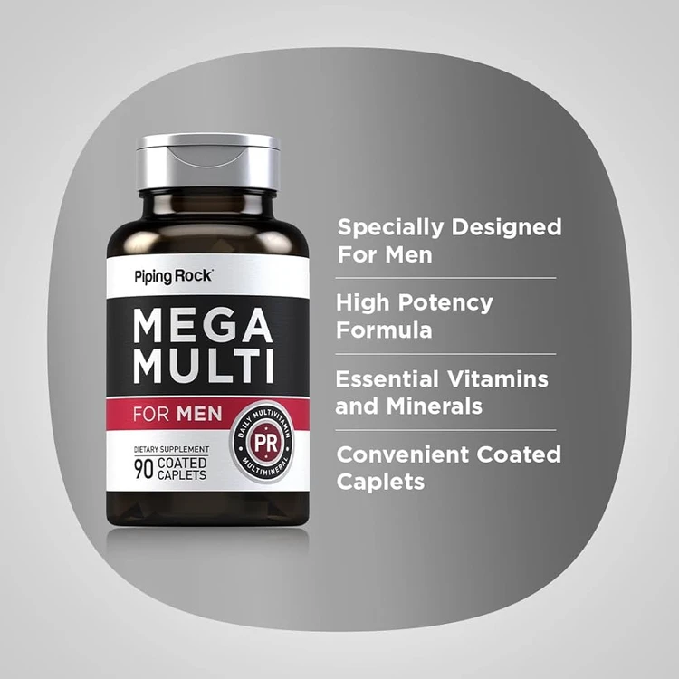 مکمل Mega Multi for Men از برند معتبر Piping Rock ترکیبی جامع از ویتامینها، مواد معدنی و آنتیاکسیدانها است که به طور ویژه برای نیازهای بدن مردان طراحی شده است.