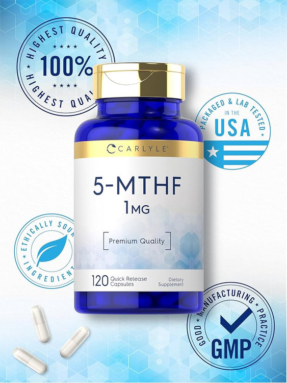 Carlyle 5-MTHF L-Methylfolate 1mg | 120 Capsules | Non-GMO, Gluten Free